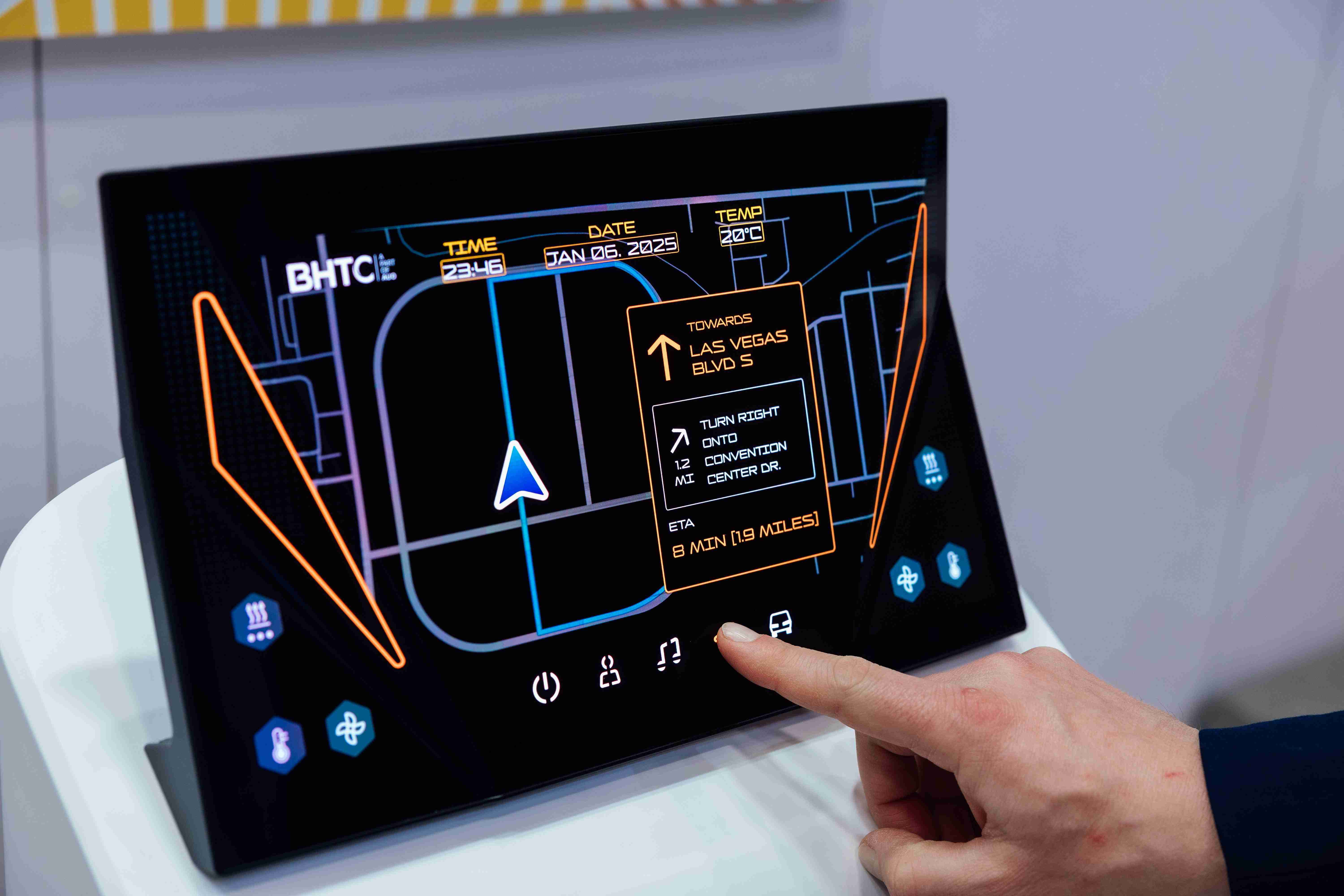 Micro LED可折迭触控显示器(Haptifold Display)结合BHTC多年HMI设计经验,,整合中控台和温度控制功能,,,以优美的曲面和独特的外型助力车内设计美学,,在辅以触控回馈下,,,为驾驶带来更直觉的使用体验。。。。