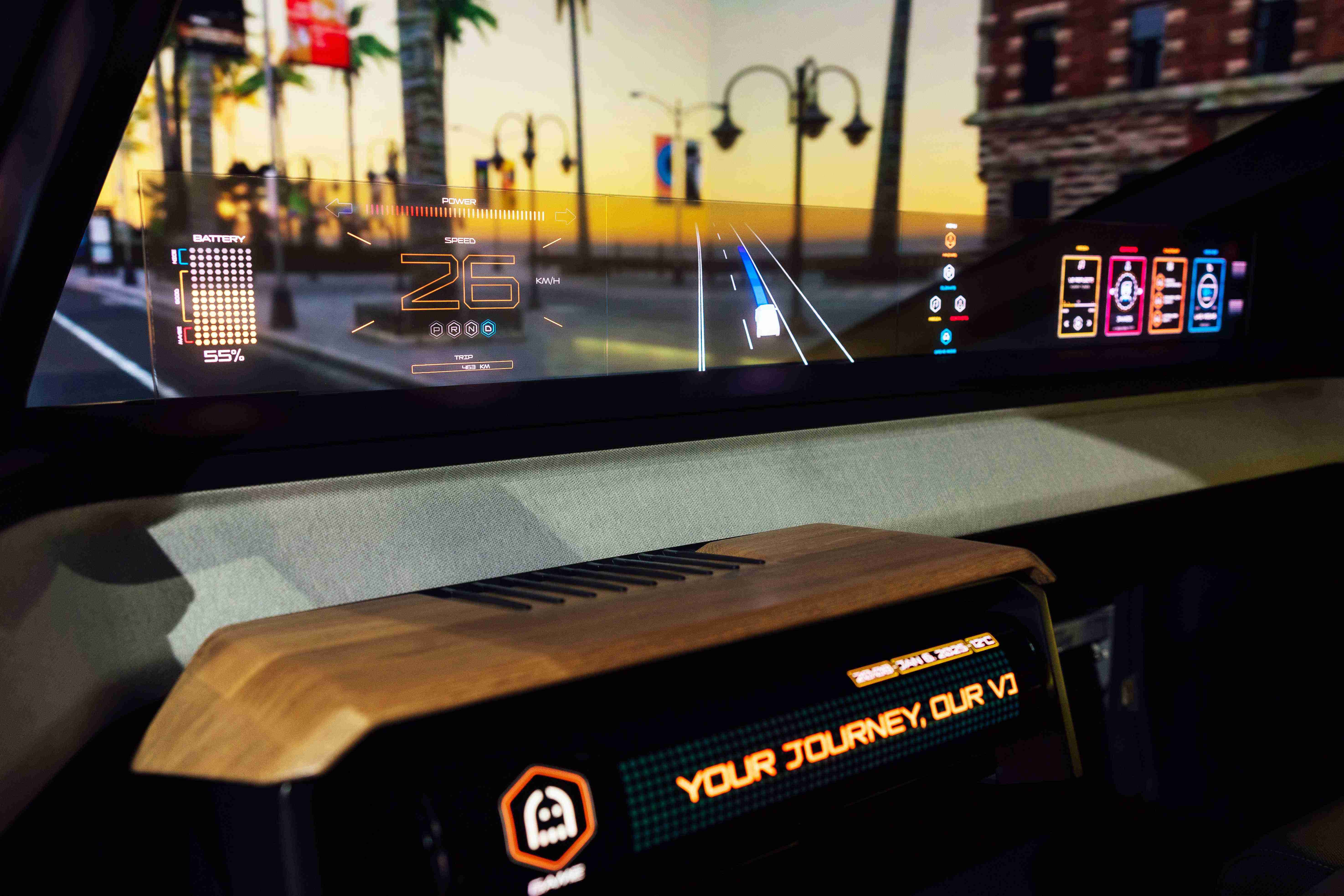 车用运算方案驱动无界透明显示介面(Horizon Image Glass),,,整合仪表板、、、中控及副驾显示功能为一体式全景呈现,,不仅提供清晰的外部视野,,亦能即时显示车辆状态、、、导航及路况资讯,,,并赋予个性化设定与驾驶安全警示等加值化服务。。。