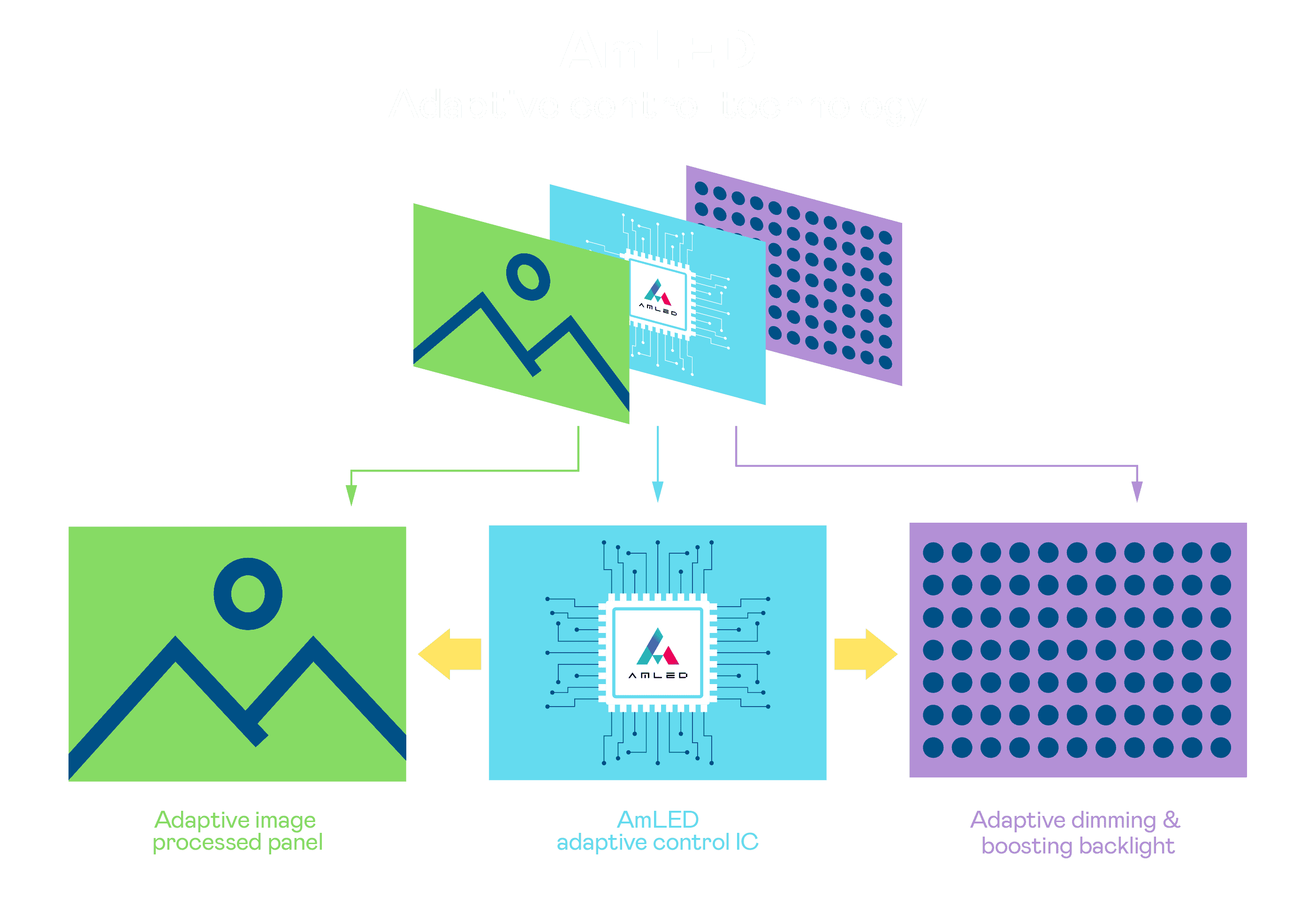 AmLED 具备更省电与低蓝光特性。。。与一般的 LED 背光显示技术相比,,由于 AmLED 常时处于局部调光状态,,,其功耗仅有前者的 50% 左右,,,同时 AmLED 还具备低蓝光特性,,,满足长时间使用的护眼需求。。