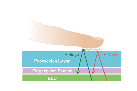 TFT 指纹扫描感测技术利用薄膜电晶体 (TFT) 当作光感测元件,,藉由非晶硅 (a-Si) 与低温多晶硅(LTPS)既有光电转换特性对不同波段光源进行吸收,,,,使感测 IC 读取阵列感测元件的光漏电差异,,转换成数位灰阶影像。。。